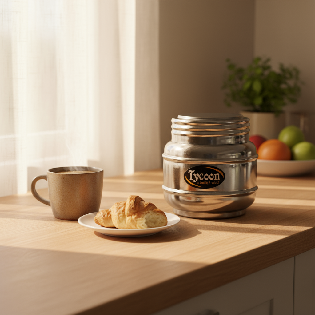 Tycoon Horlics Canister Set Introducing the Tycoon Horlics Canister Set, a reliable and practical kitchen storage solution for your daily essentials. Made from high-quality polished stainless steel, these airtight containers are perfect for keeping your Horlicks, Bournvita, protein powders, and other staples fresh and moisture-free. The classic cylindrical design offers a timeless look, and the smooth, mirror finish adds elegance to any kitchen.
